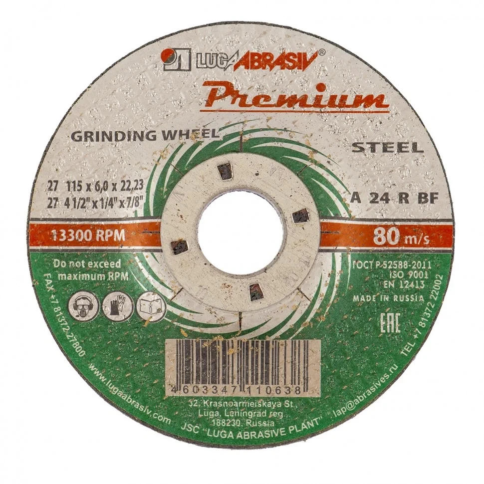 Круг зачистной по металлу, 115 х 6 х 22 мм, ПРЕМИУМ "Луга". Россия